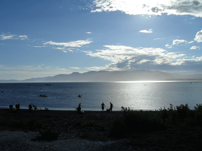 El primer dia fem uns 10 km (dels quals els 6 primers son per carretera per trobar l’inici de la ruta) fins arribar a Maori Beach. El dia càlid i tranquil, sumat a que el camí de moment era pla, fa que arribar a la platja i primera zona d’acampada sigui relativament fàcil tot i carregar amb el menjar de quatre dies.